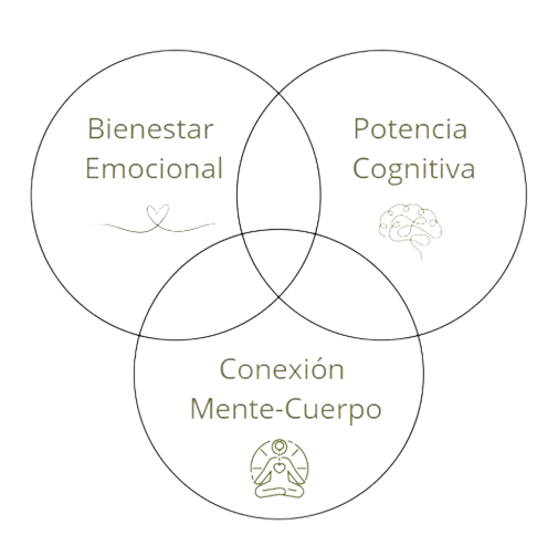 Basado en tres pilares esenciales que te guiarán hacia una vida plena y equilibrada. A través del desarrollo emocional, cognitivo y de la conexión mente-cuerpo, este método ofrece herramientas para transformar tu vida desde dentro.